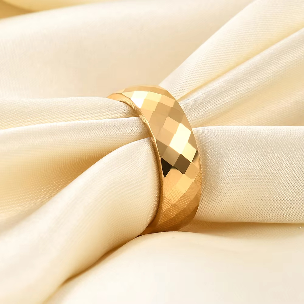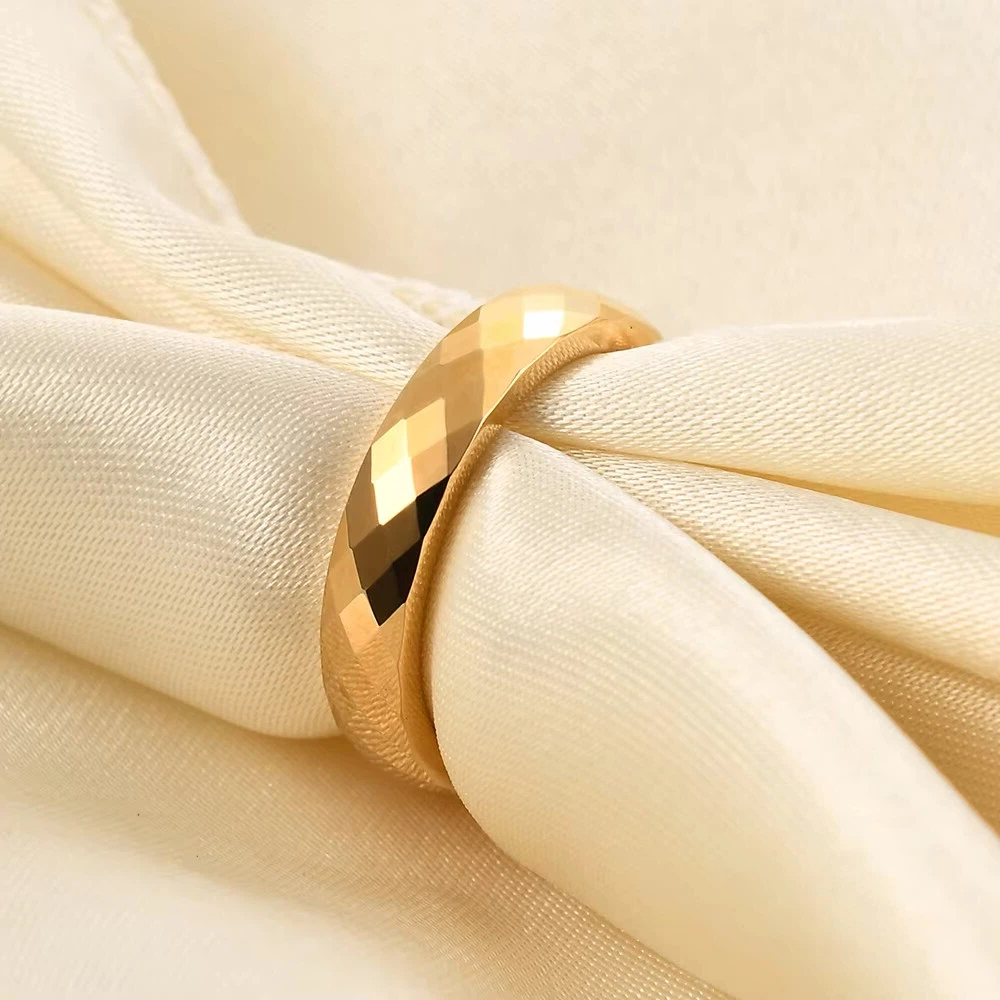 Simple Vintage Classic Smooth Unisex Women Man 18K Gold Plated Stainless Steel Ring