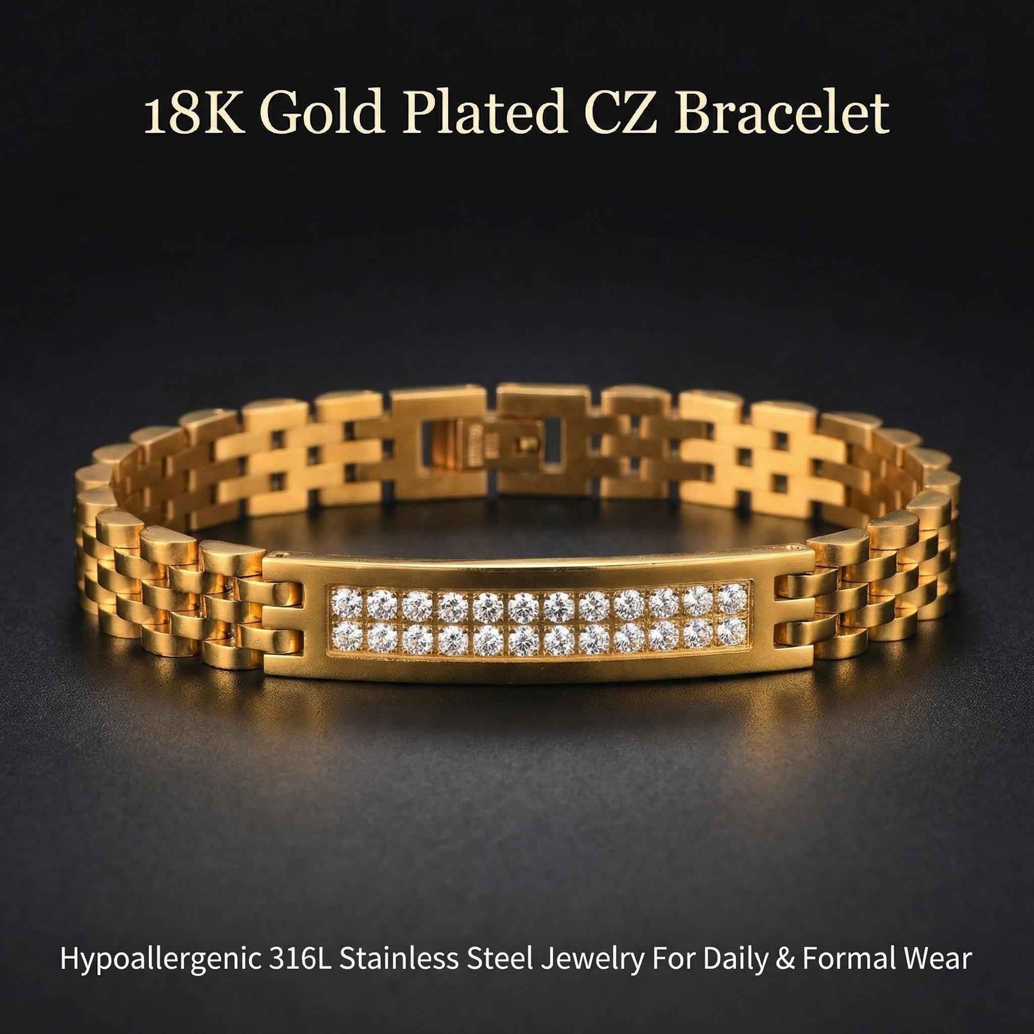 18K Gold Plated Stainless Steel Chain Bracelet - Hypoallergenic Minimalist Everyday Jewelry for Women & Men