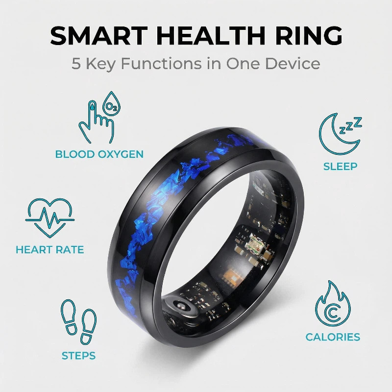 2026 New Women's Men's Smart Steel Ring Fitness Tracker Heart Rate Blood Oxygen Pressure Monitoring IP68 App Control Sleep Step SMR163