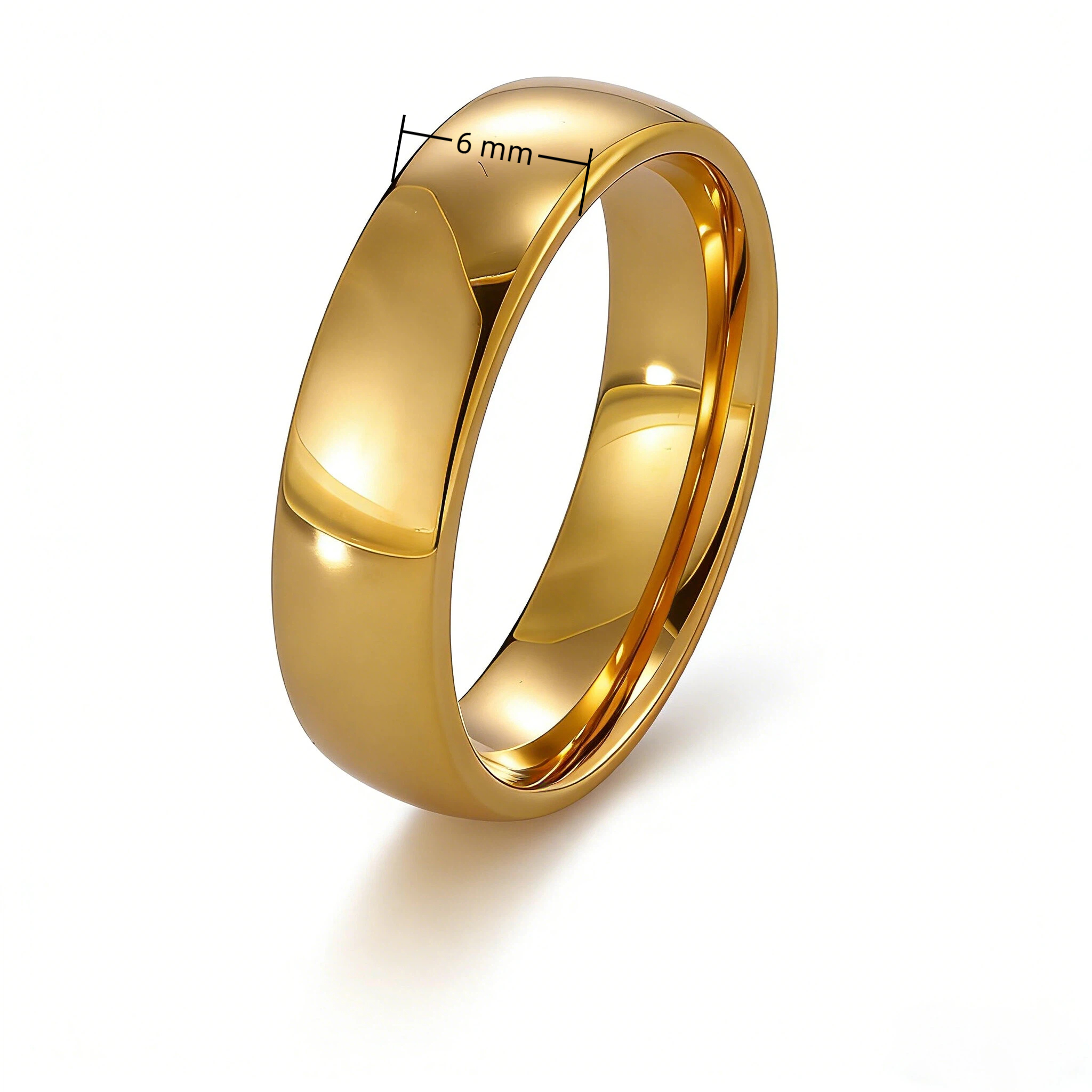 Tungsten 18K Gold Shiny Gloss Ring 6mm – Polished Men’s Wedding Band, Scratch‑Resistant Comfort Fit, Durable Hypoallergenic Jewelry For Daily Wear