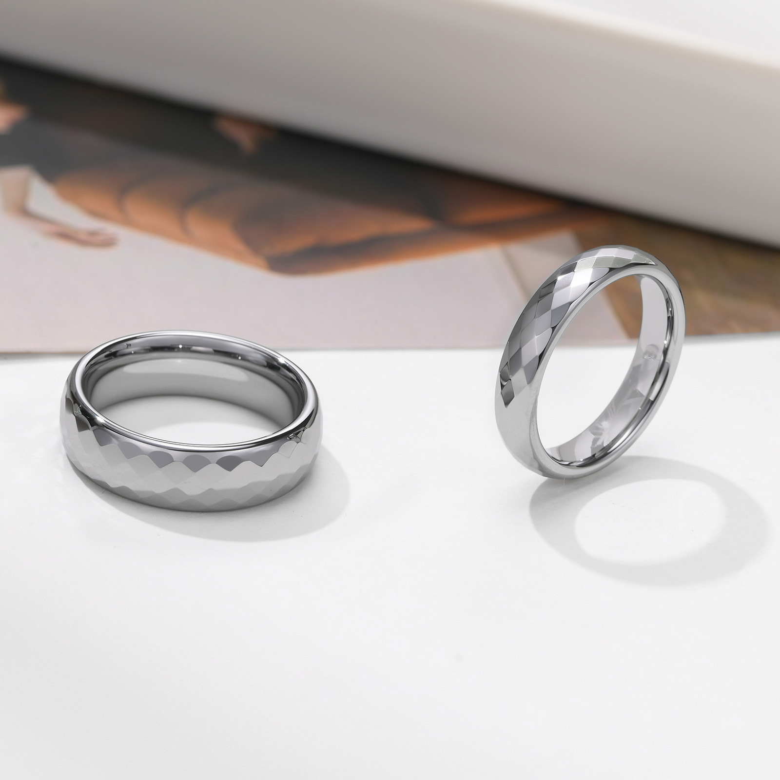 6mm 8mm High Polished Tungsten Ring for Men Pure Handmade Mirror Finish Tungsten Carbide Multi-faceted Men's Wedding Band Jewelry