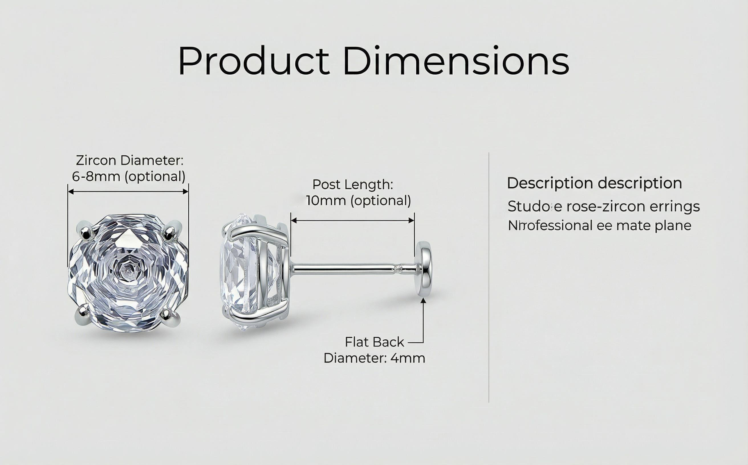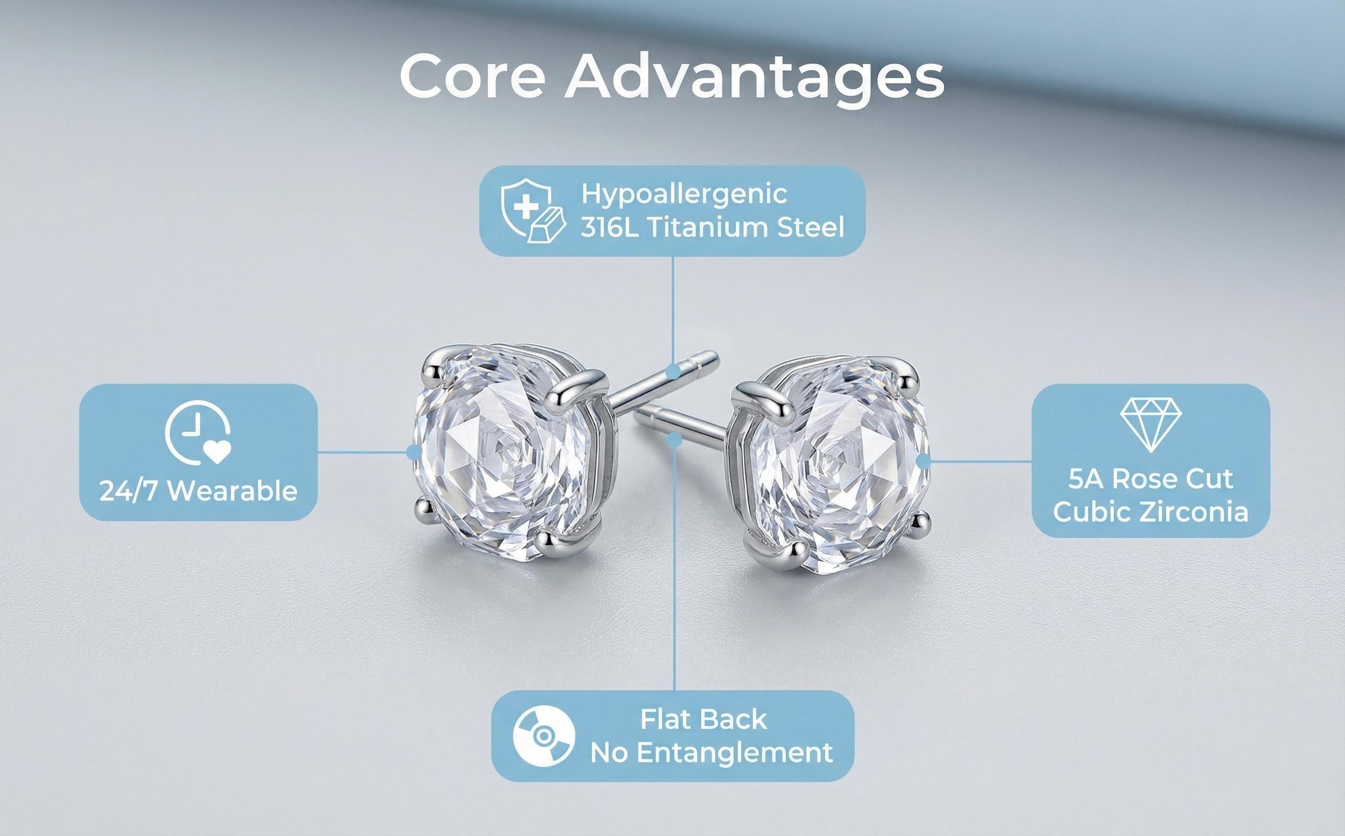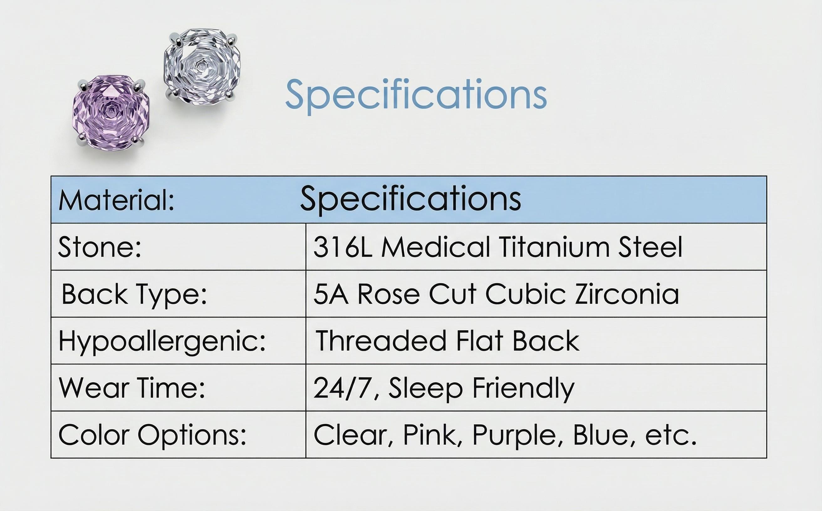 316L Titanium Steel Rose Cut Zircon Stud Earrings Flat Back Labret Hypoallergenic Cartilage Jewelry