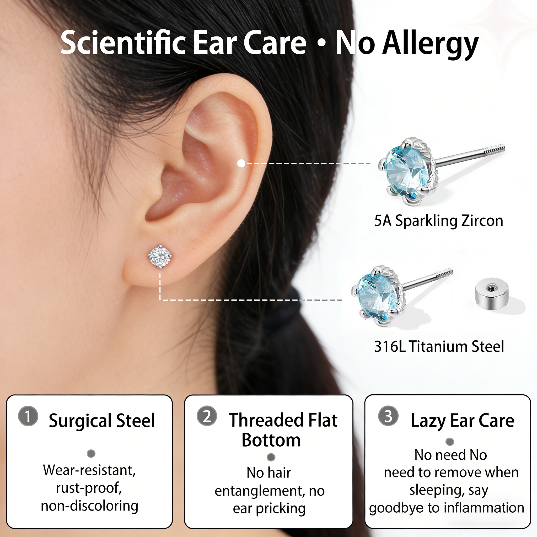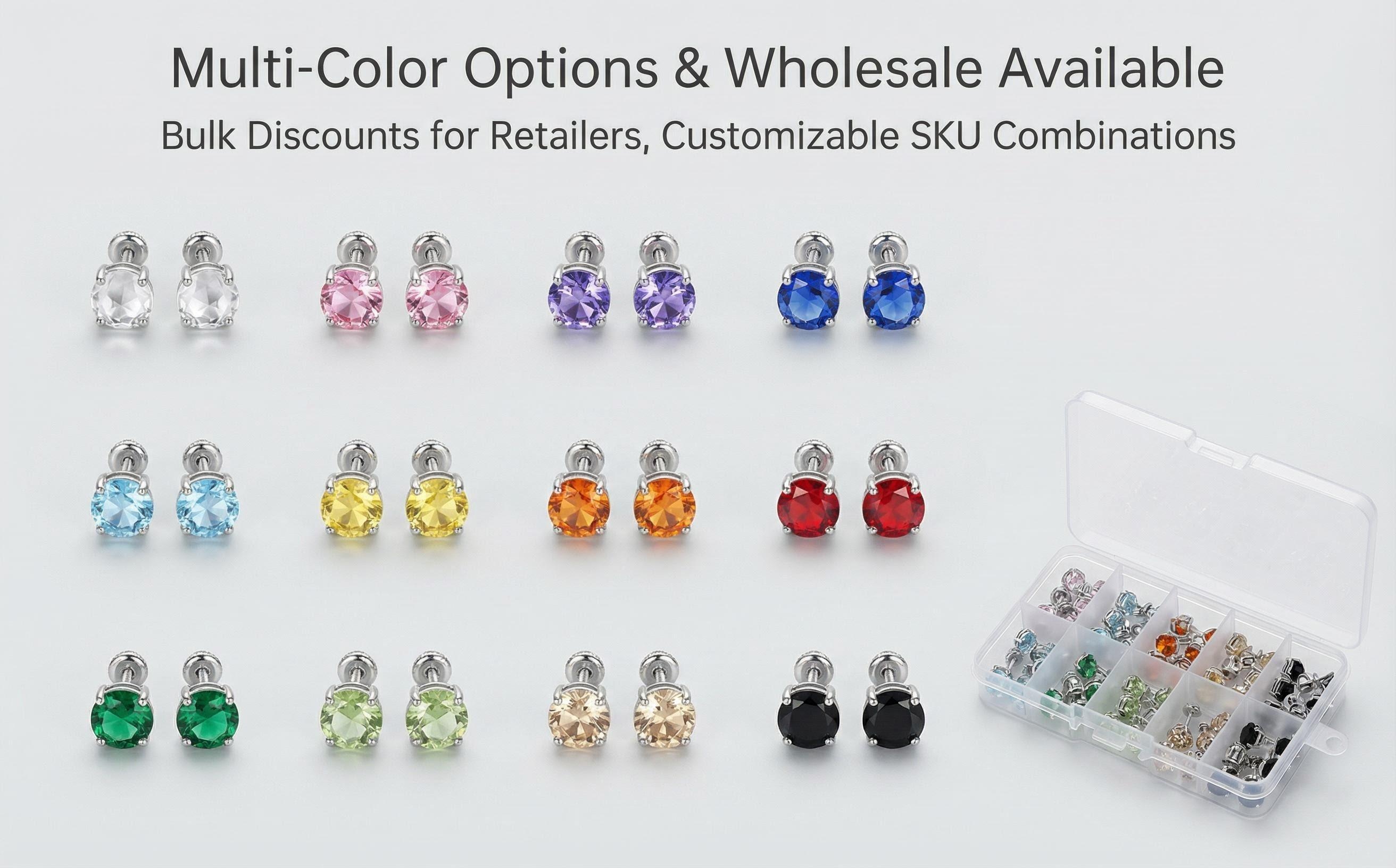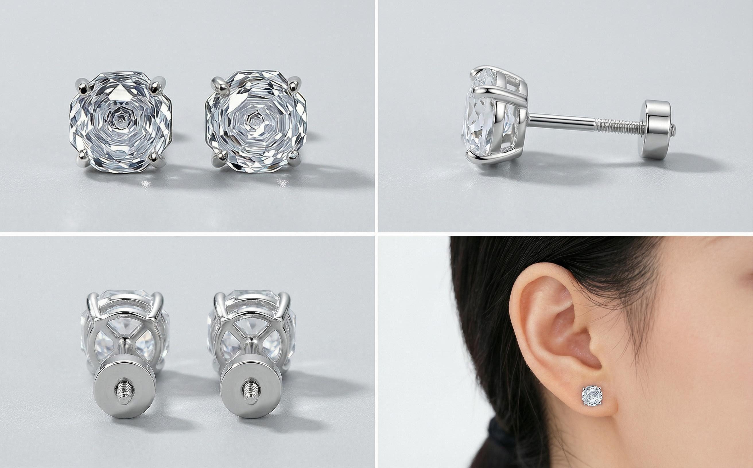 316L Titanium Steel Rose Cut Zircon Stud Earrings Flat Back Labret Hypoallergenic Cartilage Jewelry