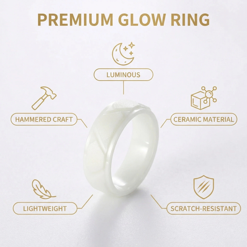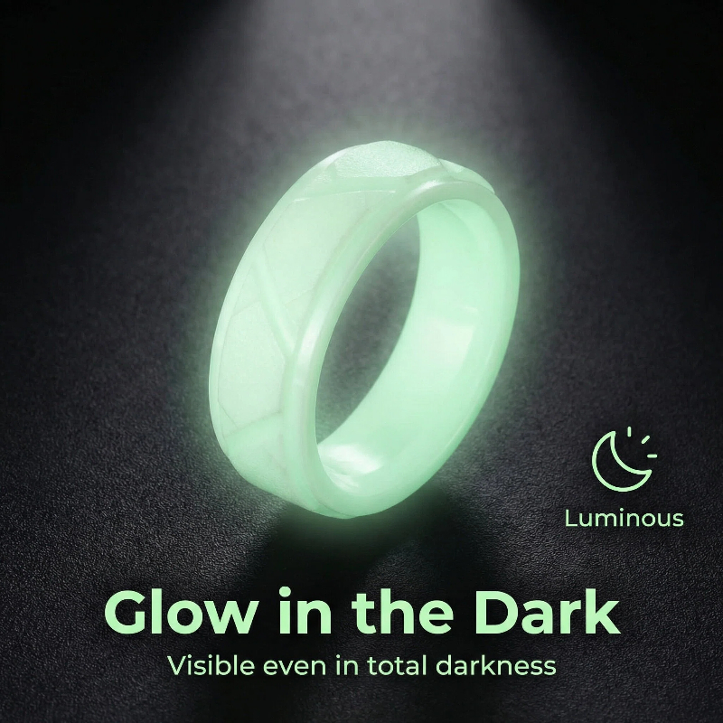 8mm Glow-in-the-Dark Ceramic Ring | Engraved Cut Texture & Matt Finish | Unique Night Jewelry CR1901