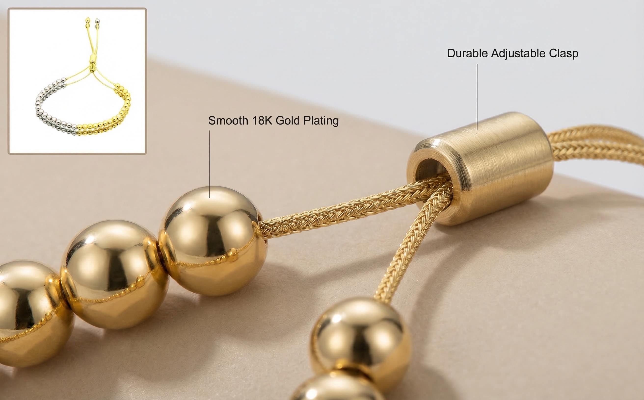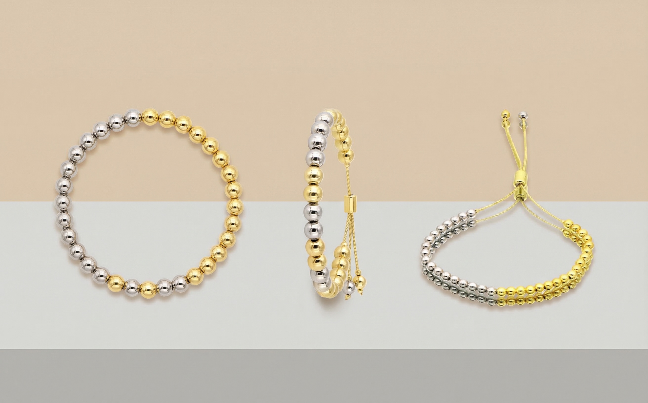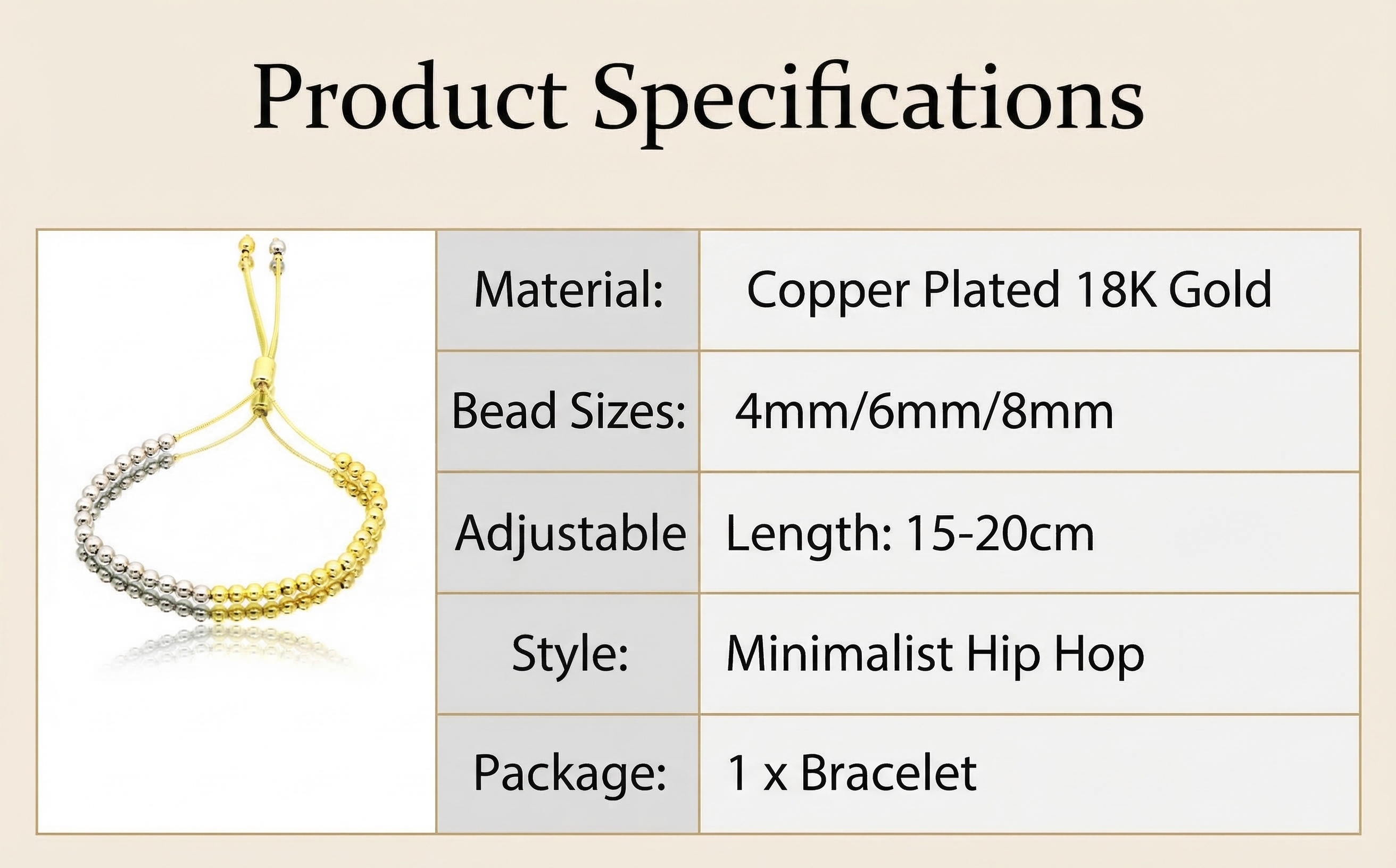 New Hip Hop Simple Beaded Bracelet for Women, Copper Plated 18K Gold, 4mm/6mm/8mm Round Bead Bracelet BNB019